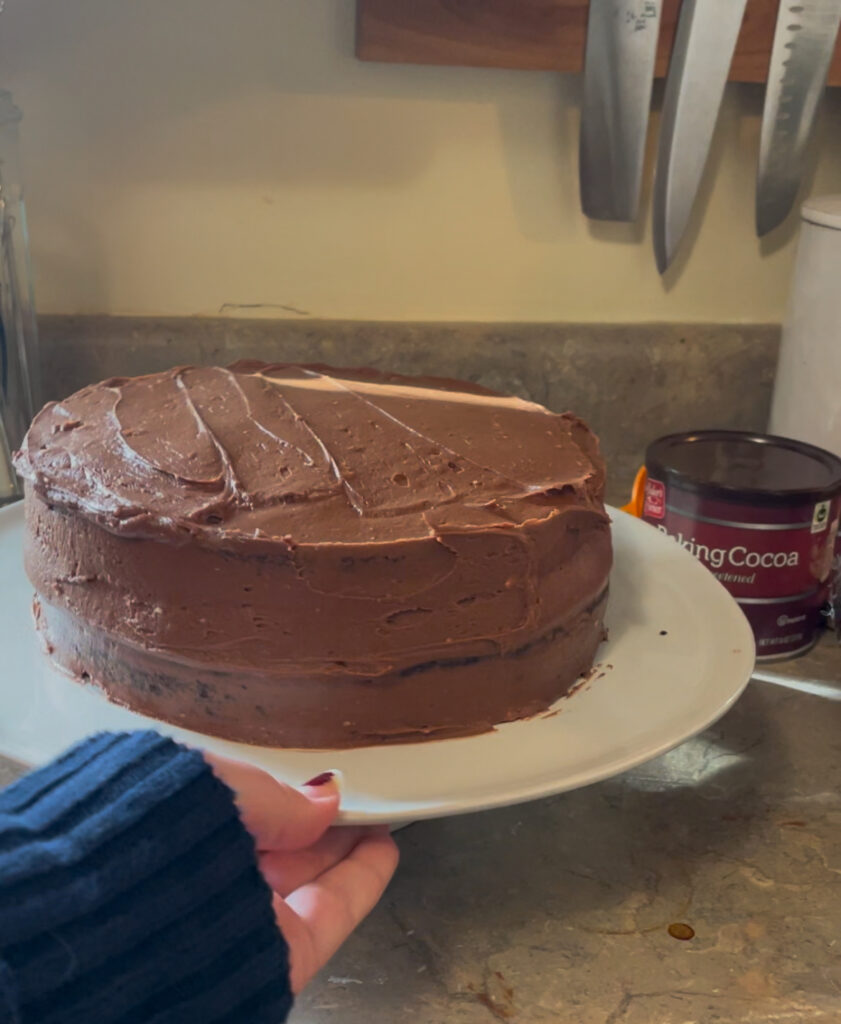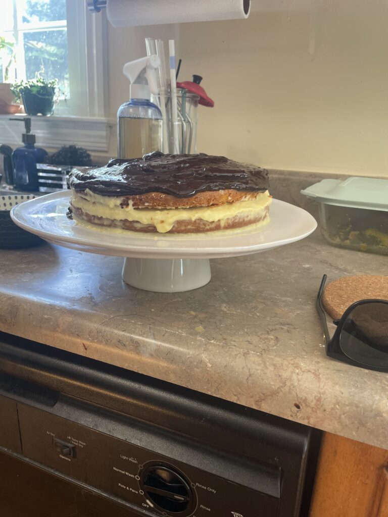 A quick Boston creme pie for my dad’s birthday. It looked ugly but it tasted so good my dad wrote me a thank you note!