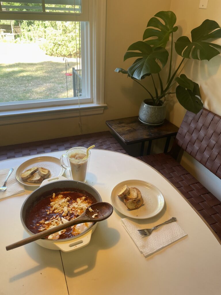 A cutie little early September shakshuka out of some tomatoes and peppers that needed to be used up. I may have made the bread too!